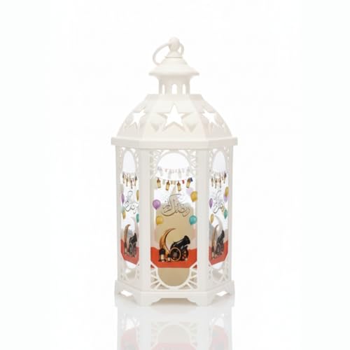 Generic - فانوس رمضان سداسي باللون الأبيض بتصميم إسلامي عتيق مع شمعة LED.