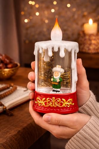 Generic - فانوس رمضان LED بدون لهب بتصميم شتاء مع شكل داخلي - اضاءة دافئة امنة - فانوس للمنزل والمكتب، شمعة زينة LED بدون لهب بتصميم شتوي وتمثال