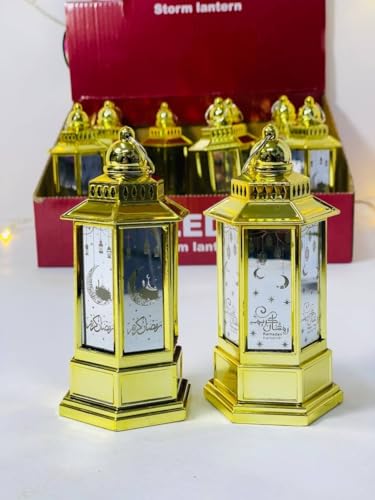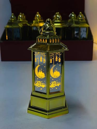 Generic - فانوس رمضان LED ذهبي مع رسومات هلال ومسجد، إضاءة ديكور رمضاني، ، 13 سم لأجواء رمضان 2026 حجم صغير