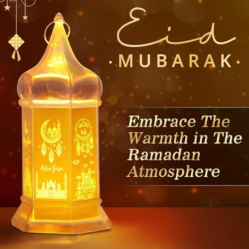 - إضاءة LED دافئة: مزودة بإضاءة LED توفر توهجاً دافئاً ومريحاً يخلق أجواء رمضانية مميزة في المنزل أو المكتب