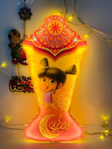 Generic - فانوس رمضان مضيء بشخصيات رمضانية، بلاستيك بإضاءة ليد بيضاء، بفيشة كهربائية، 40 سم، تصميمين مختلفين مع أنوار زينة