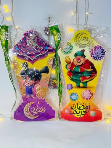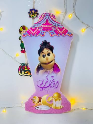 - تصميم رمضاني مميز: فانوس مطبوع عليه شخصيات رمضانية متنوعة بألوان زاهية ونابضة بالحياة تضفي أجواء احتفالية مبهجة