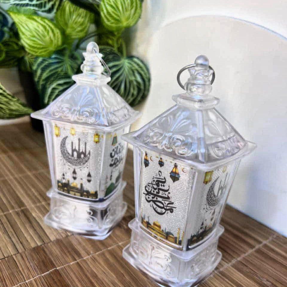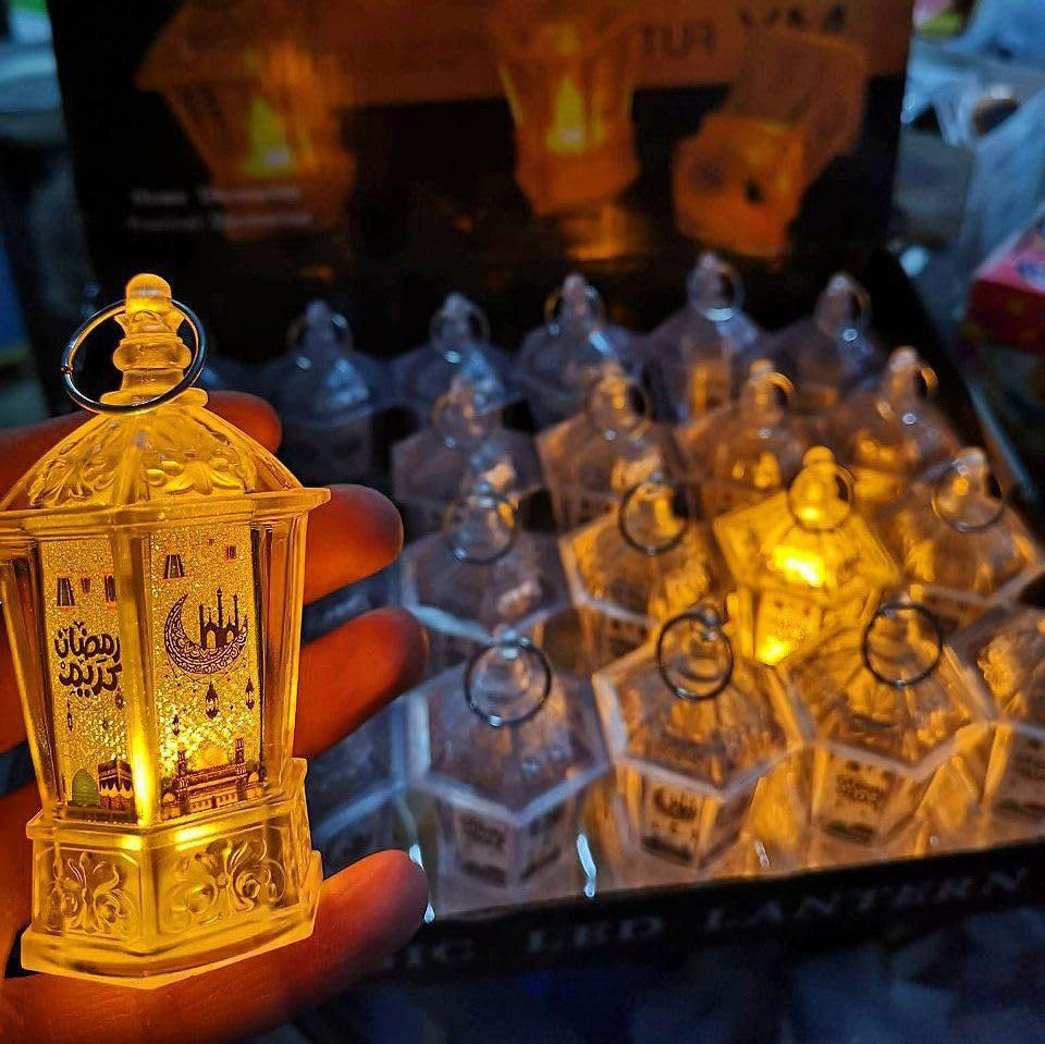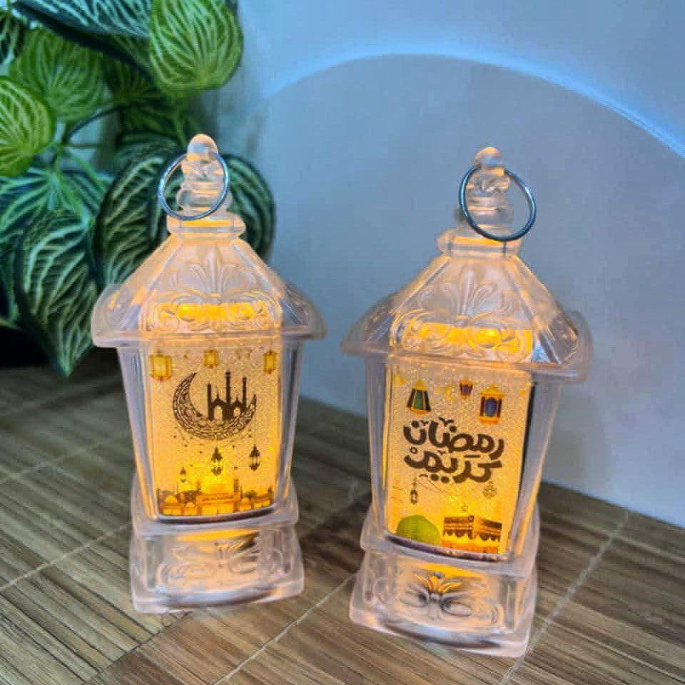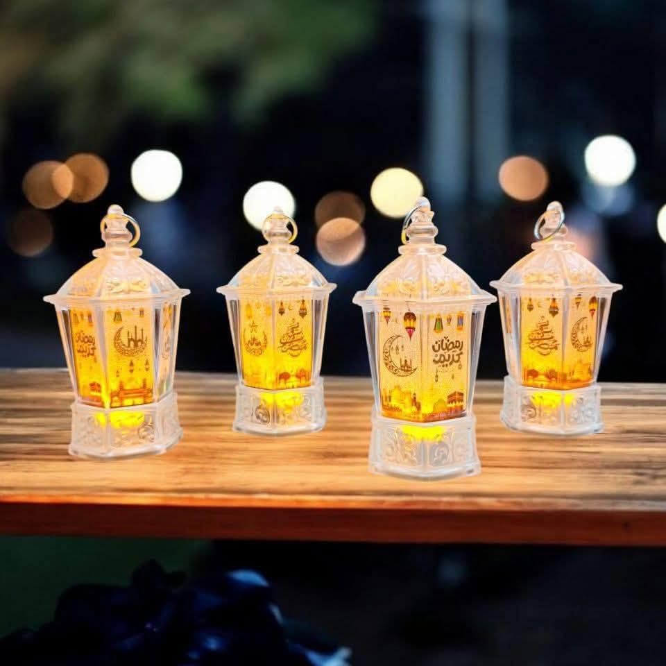 - فانوس رمضاني مضيء: قطعة زينة تقليدية مميزة على شكل مصباح بإضاءة LED دافئة تضفي أجواء روحانية واحتفالية على منزلك خلال شهر رمضان المبارك والأعياد الإسلامية