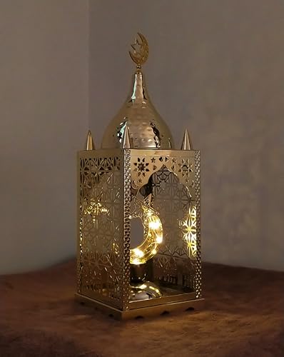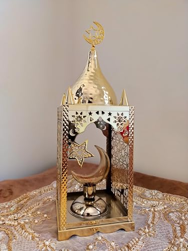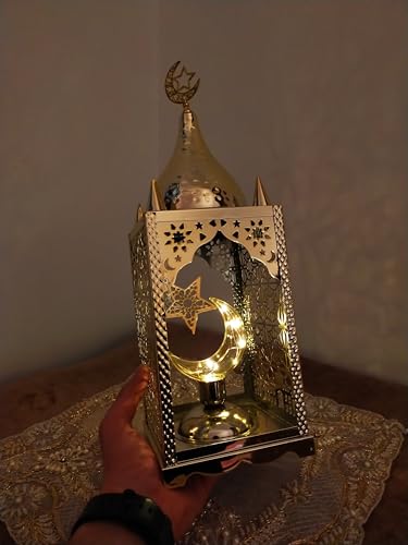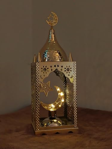 Generic - فانوس رمضان الفاخربتصميم اسلامي - فانوس معدني مضيء باللون الذهبي - ديكور رمضان - فانوس 40*14*14