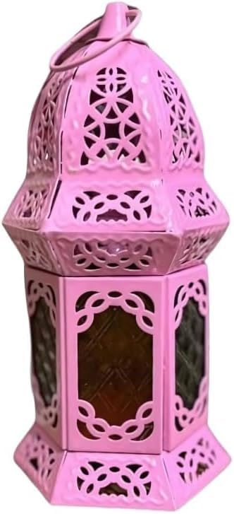 Generic - فانوس رمضان معدني قبة صغير باللون بينك مع شمعة هدية