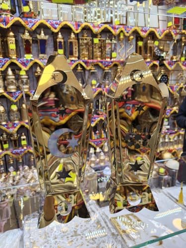 Generic - فانوس رمضان معدني مضيء، استانلس استيل ذهبي، مقاس كبير، تصميم نجمة وهلال