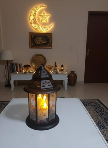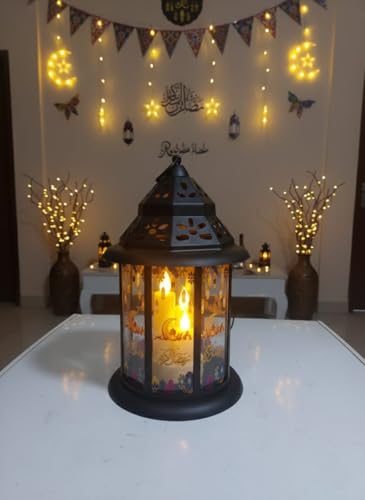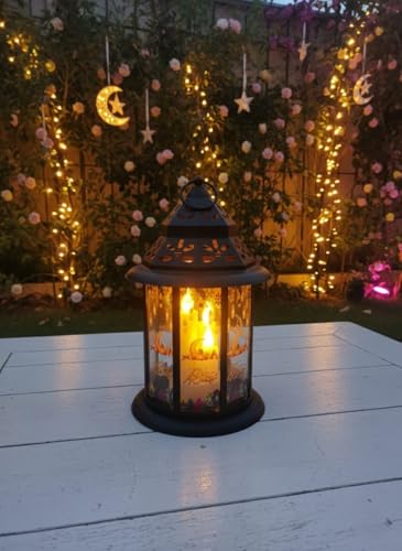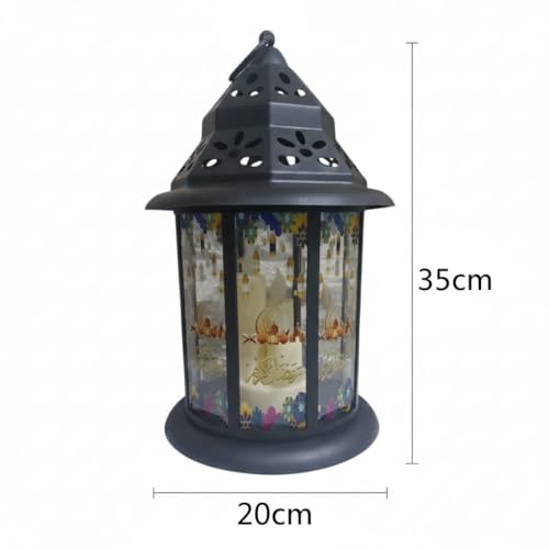 Generic - فانوس رمضان ديكور مودرن مقاس 35*20 سم - مزود بإضاءة LED شمعية وموسيقى رمضانية مع امكانية تشغيل الضوء فقط بدون موسيقى - يعمل بالبطاريات او كابل USB - تصميم أنيق للمنزل والحديقة (35*20 سم اسود 1)