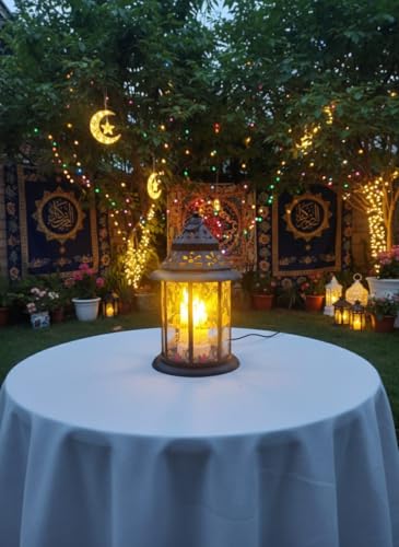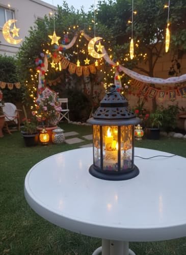 - إضاءة شمعية دافئة يحتوي الفانوس من الداخل على شموع LED تعطي إضاءة صفراء دافئة تحاكي ضوء الشموع الحقيقي، مما يوفر أجواءً هادئة وآمنة تماماً (بدون نار أو دخان)