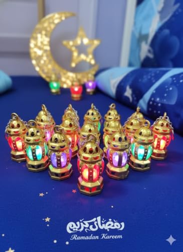 Generic - فانوس رمضان بلاستيك به كرة مضيئة بميدالية - متعدد الألوان مناسب للهدايا والاحتفال بالشهر الكريم (12 قطعة)