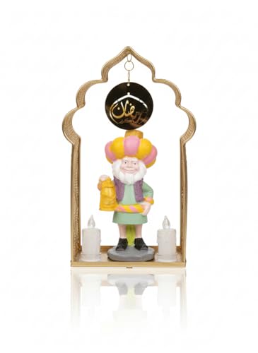 - شخصية بورسلين مميزة: يتميز بشخصية رجل تراثي مصنوعة من البورسلين عالي الجودة يحمل فانوساً ويرتدي زياً ملوناً بألوان زاهية مع عمامة مميزة