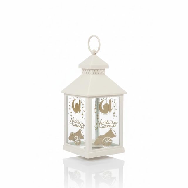 Generic - فانوس رمضان أبيض كلاسيكي بنقوش "رمضان يجمعنا" ومدفع رمضان