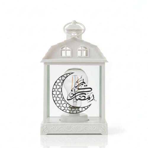 Generic - فانوس رمضان أبيض مودرن على شكل كوخ مع إضاءة ليد