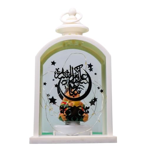 Generic - فانوس رمضان باضاءة LED، تصميم مربع ابيض مع خط اسلامي، بلاستيك، 26 × 15 × 11 سم