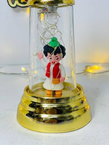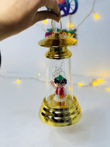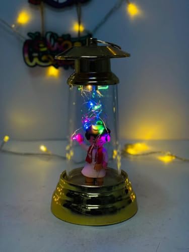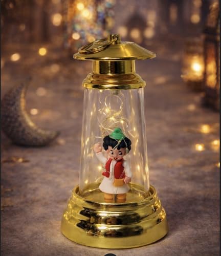 Generic - فانوس رمضان بشخصيات تقليدية بكار ، زجاج بإطار معدني ذهبي مع إضاءة LED ملونة، ، 19 سم لأجواء رمضان