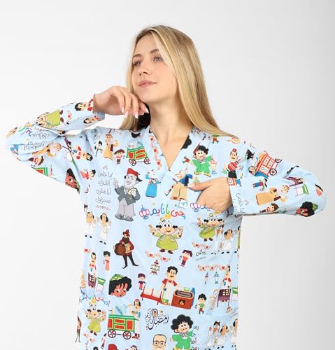 Resan Medical wear - مقشر طبي مطبوع عليه رمضان للمستشفيات للجنسين - غطاء راس مقشر جراحي - طبيب بيطري - زي طبي - زي طبي باكمام طويلة فقط