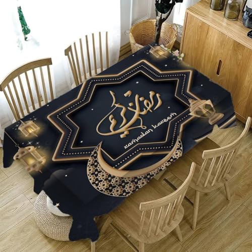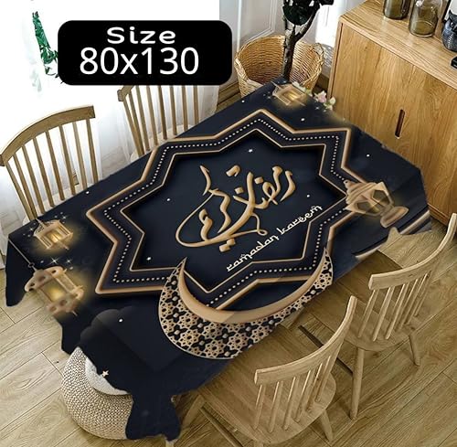 Generic - مفرش طاولة وسفرة لشهر رمضان مودرن 4D - مشمع ثقيل مقاوم للماء والبقع - تصميم فوانيس وهلال ذهبي - مقاس 130×80 سم -اصنع لمسة شهر رمضان السحرية علي مائدتك