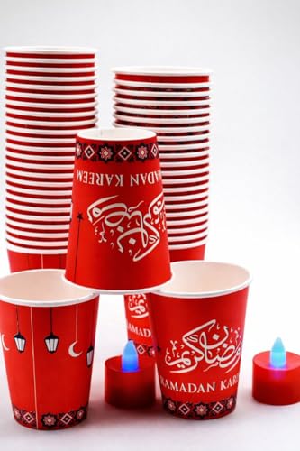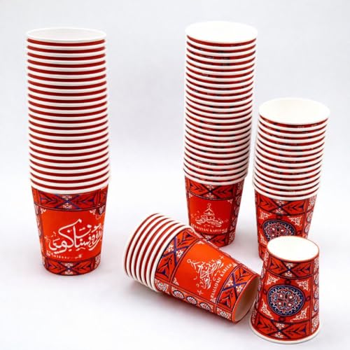 Generic - أكواب ورقية لشهر رمضان من الورق المقوى اقتصادية وعملية لمختلف المشروبات بتصميم متين وجذاب للتجمعات، عبوة من 50 قطعة (عبوة من 100 قطعة)