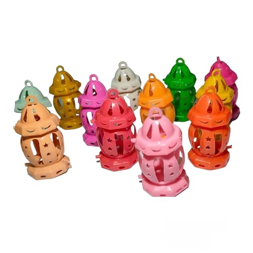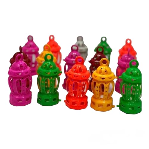 LC - فانوس رمضان بلاستيك مع إضاءة، 12 قطعة بأشكال متعددة وألوان متعددة