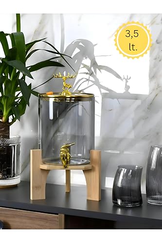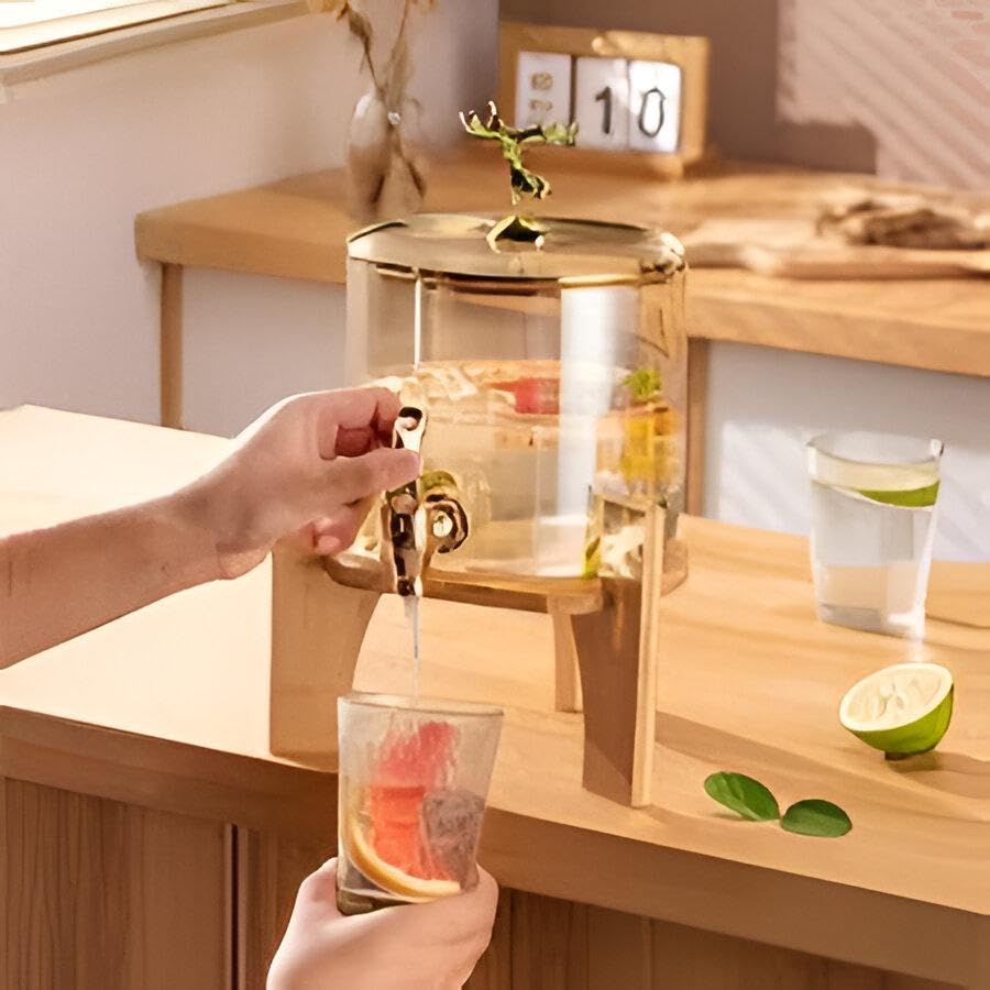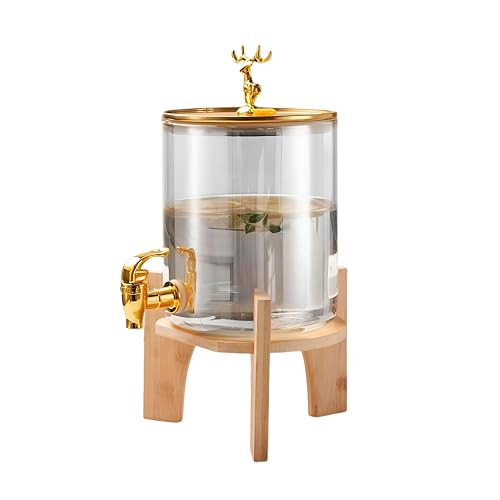 Generic - موزع مشروبات زجاجي لشهر رمضان بسعة 2.6 لتر مع صنبور ذهبي لامع وقاعدة من خشب الخيزران بفوهة من الفولاذ المقاوم للصدأ مانعة للتسرب لاستضافة تجمعات الإفطار في رمضان سهل الصب والتنظيف