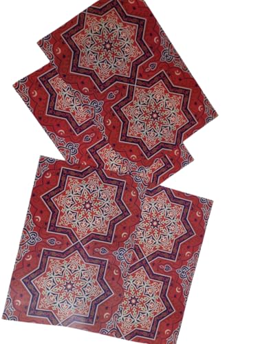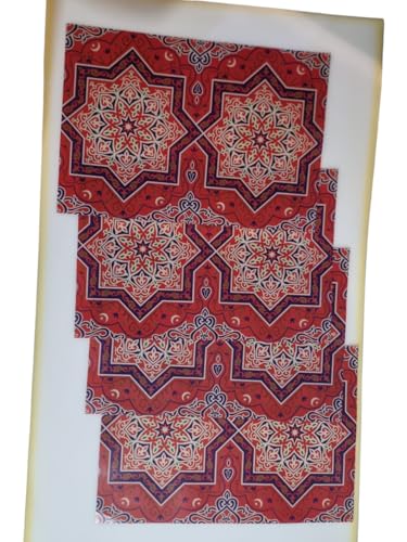 Smart A.S.B - مفارش ثلاجة رمضان، نمط نجمة حمراء مزخرفة، مجموعة من 4 قطع، بطانات رفوف بلاستيكية متينة، تصميم اسلامي تقليدي، تنظيم المطبخ