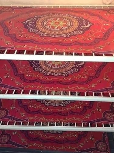 - تصميم رمضان: مفارش ثلاجة جميلة تتميز بأنماط نجوم إسلامية تقليدية باللون الأحمر النابض بالحياة، مثالية لإضافة لمسة رمضان الاحتفالية إلى مطبخك مع الحفاظ على الأرفف نظيفة ومنظمة
