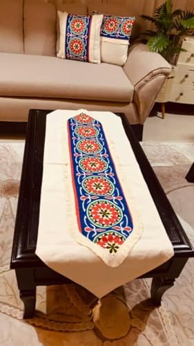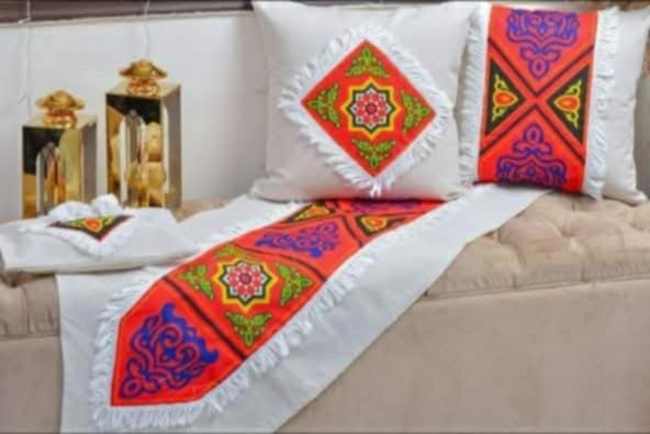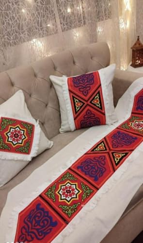Generic - طقم رمضان رنر و2 كوشن، ابيض