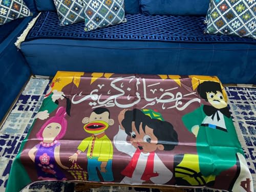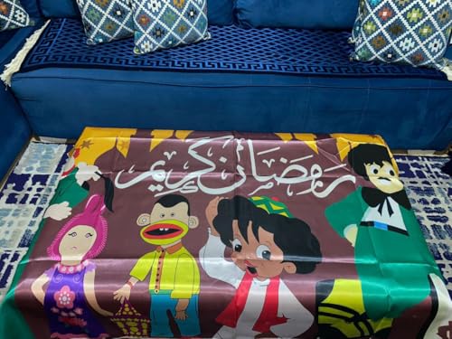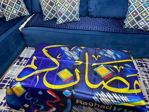 Generic - مفرش ستان بتصميمات رمضان، مقاس 1.5 × 1.5 متر، أشكال مميزة تناسب أجواء الشهر الكريم R