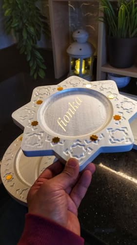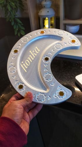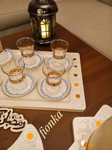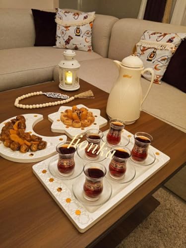Generic - طقم صواني تقديم رمضان - خشب مطلي بالأكريليك الذهبي، معالج بتقنية متقدمة، آمن على الطعام وقابل للغسيل، مقاوم تمامًا للسوائل طقم مكون من 3 قطع بتصميم هلال ونجمة.