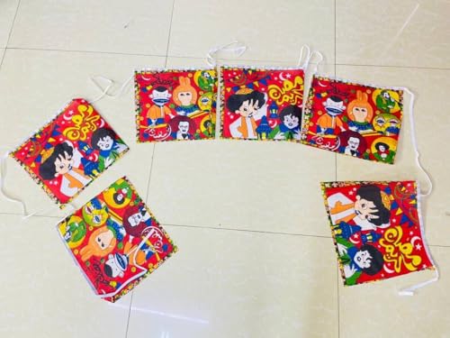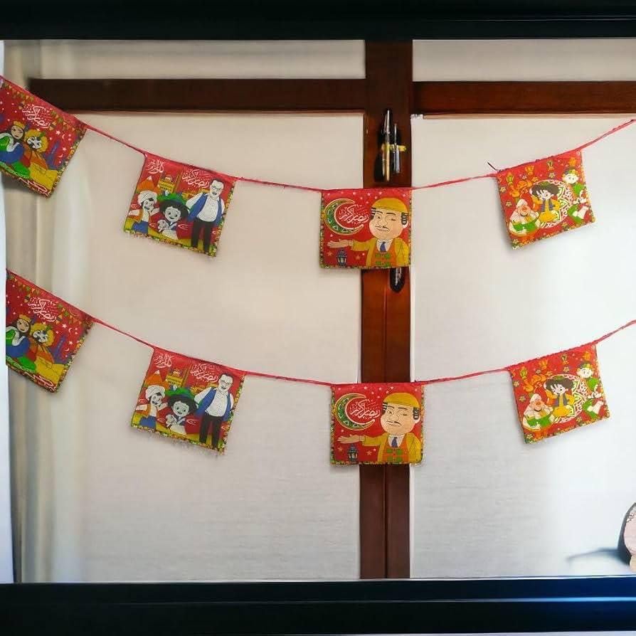 Generic - راية زينة رمضان مربعة، تصميم شخصيات كرتونية ملونة، اكليل احتفالي احمر متعدد الالوان 50 متر