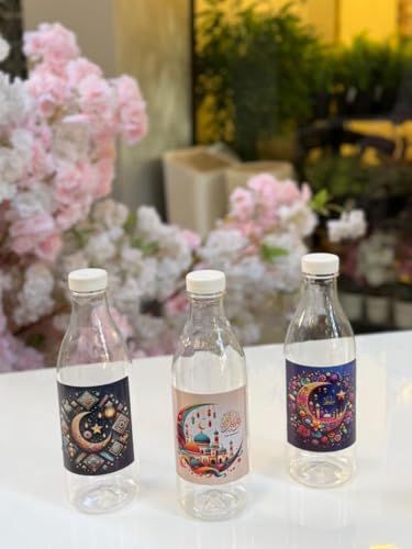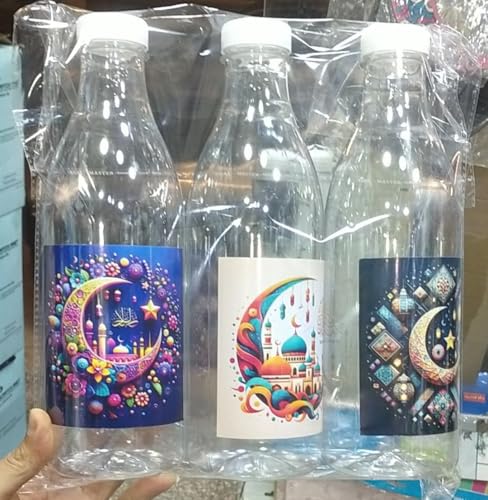 Generic - طقم زجاجات عصير بتصميمات رمضانية أنيقة – 3 قطع بسعة 1 لتر – بلاستيك صحي للمشروبات الباردة والعصائر – مثالي للتقديم اليومي والعزومات ST