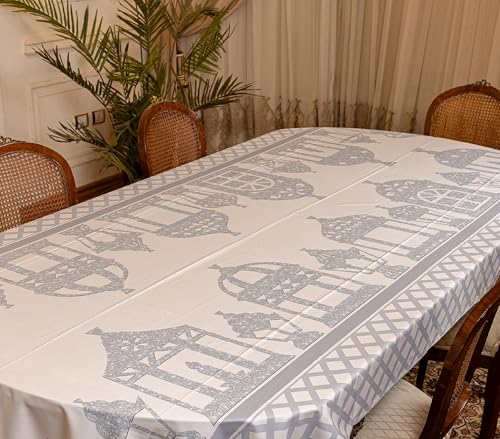 Generic - غطاء طاولة رمضان - تصميم جديد - طعام من 8 الى 10 مقاعد - فوانيس فضية L005 البوليستر 145 x 300 سم