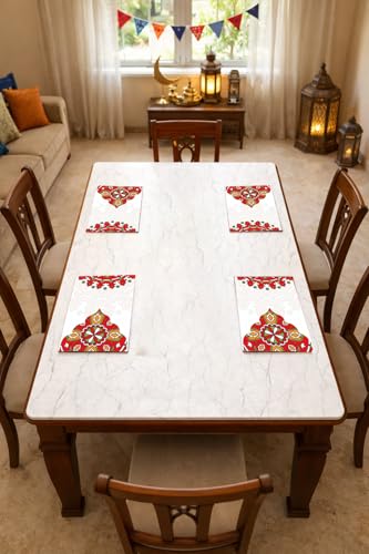 Generic - طقم مفارش طاولة رمضان، جلد ليزرسكاي، 30x40 سم، 4 قطع، مقاوم للحرارة والمياه، ألوان عالية الجودة