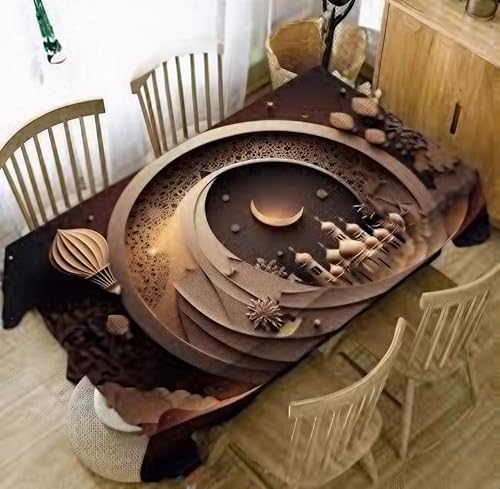Generic - مفرش طاولة وسفرة رمضان 4D تحفة الأرابيسك مقاس 130×80 سم تصميم خشبي مجسم بهلال ومآذن محفورة - خامة ثقيلة وعملية - ضع لمستك السحرية الي مائدتك