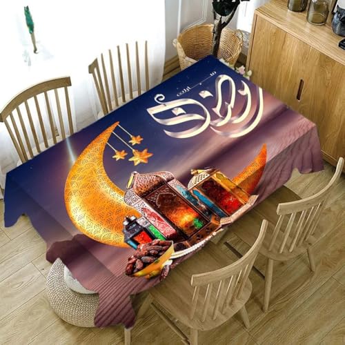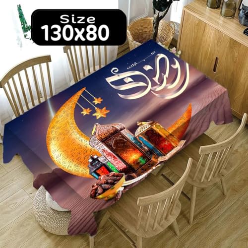 Generic - مفرش سفرة رمضان 4D "أضواء الغروب" - مقاس 130×80 سم - تصميم احتفالي يضم فوانيس وهلال ذهبي - خامة ثقيلة سهلة التنظيف - ديكور رمضاني ضع لمستك السحرية علي مائدة طعامك