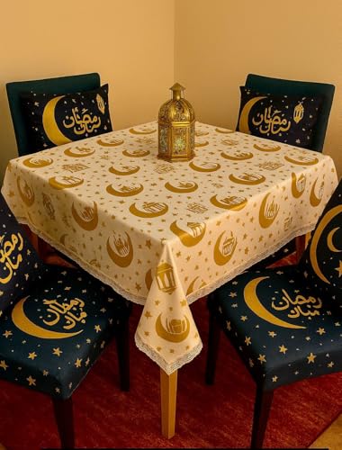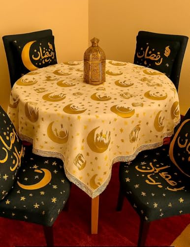 - سهولة التنسيق: يتناسق بشكل رائع مع أغطية الكراسي الرمضانية والفوانيس والديكورات الإسلامية، ويمكن استخدامه على الطاولات المربعة أو المستديرة
