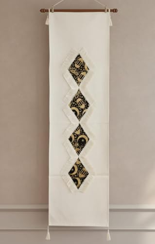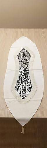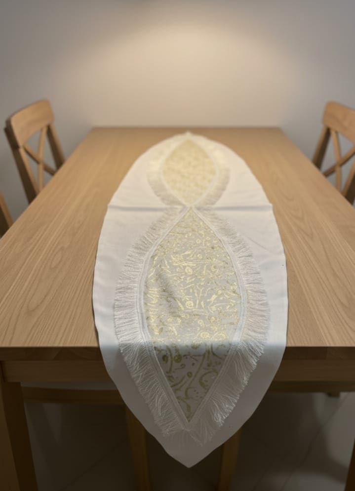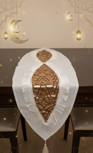 - حواف مزينة بالشراشيب: مزود بشراشيب بيضاء ناعمة على الحواف تضيف لمسة تقليدية وأناقة كلاسيكية لديكور المائدة الرمضانية