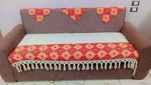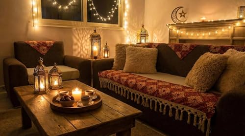Generic - طقم مفرش طاولة رمضان 160×150 مع 4 أكياس كوشن – أجواء رمضانية راقية وبهجة (طقم بياضات انتريه نقشة خيامية رمضان 4 قطع - مفرش كنبة خيامي 2*1 متر)