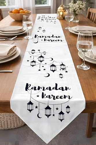 Generic - مفرش طاولة رمضان - مفرش قماشي انيق 180 × 35 سم بتطريز فانوس ونجمة، مثالي للافطار والسحور، قطن عالي الجودة، ديكور متعدد الاستخدامات