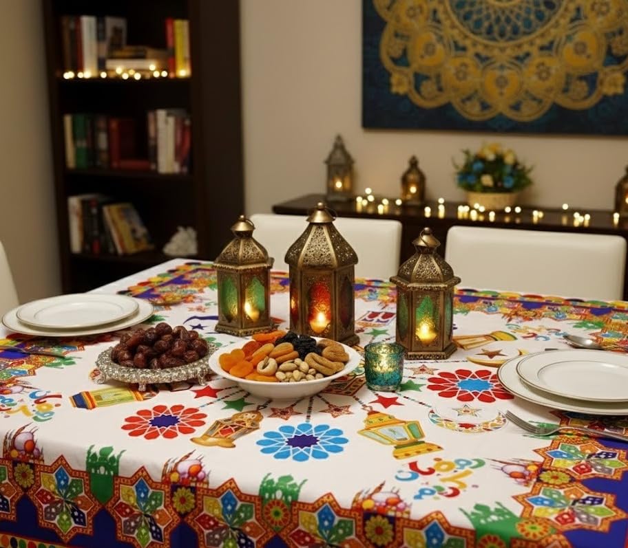 - مفرش طاولة رمضان يحول طاولة الطعام الخاصة بك إلى مساحة دافئة ترحيبية للإفطار والسحور، مما يجعل كل تجمع عائلي يشعر بالتميز دون بذل جهد إضافي.