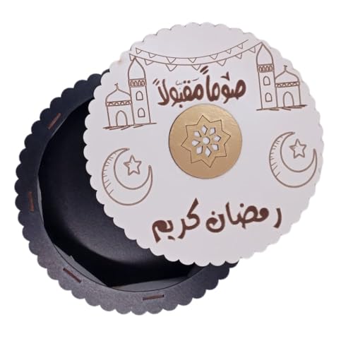Generic - تمرية رمضان ، طبق تقديم التمر مصنوع من الخشب بعبارة (صوماً مقبولاً ) ، وعاء خشبي دائري شيك لاجواء رمضان