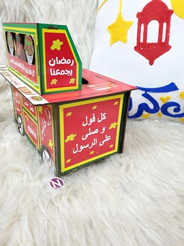 Generic - علبة مناديل رمضان - تصميم عربة طعام خشبية أنيقة تتميز بلمسات حمراء وخضراء وصفراء نابضة بالحياة، وخط عربي، ومساحة تخزين واسعة لما يصل إلى 550 منديل، مثالية للديكور الاحتفالي.
