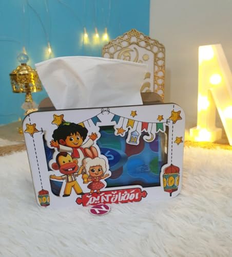 Generic - علبة مناديل رمضانية على شكل تلفزيون، تصميم شخصيات كرتونية، ديكور رمضان 2026 للمنزل قطعتين