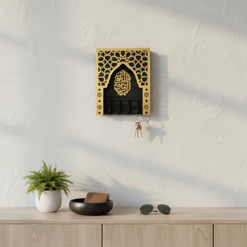 Generic - حامل مفاتيح زينة رمضان جدارية - منظم مفاتيح مذهب بنقش آية الفلق - لوحة ديكور للمدخل مودرن - علاقة مفاتيح وإكسسوارات خشبية فاخرة