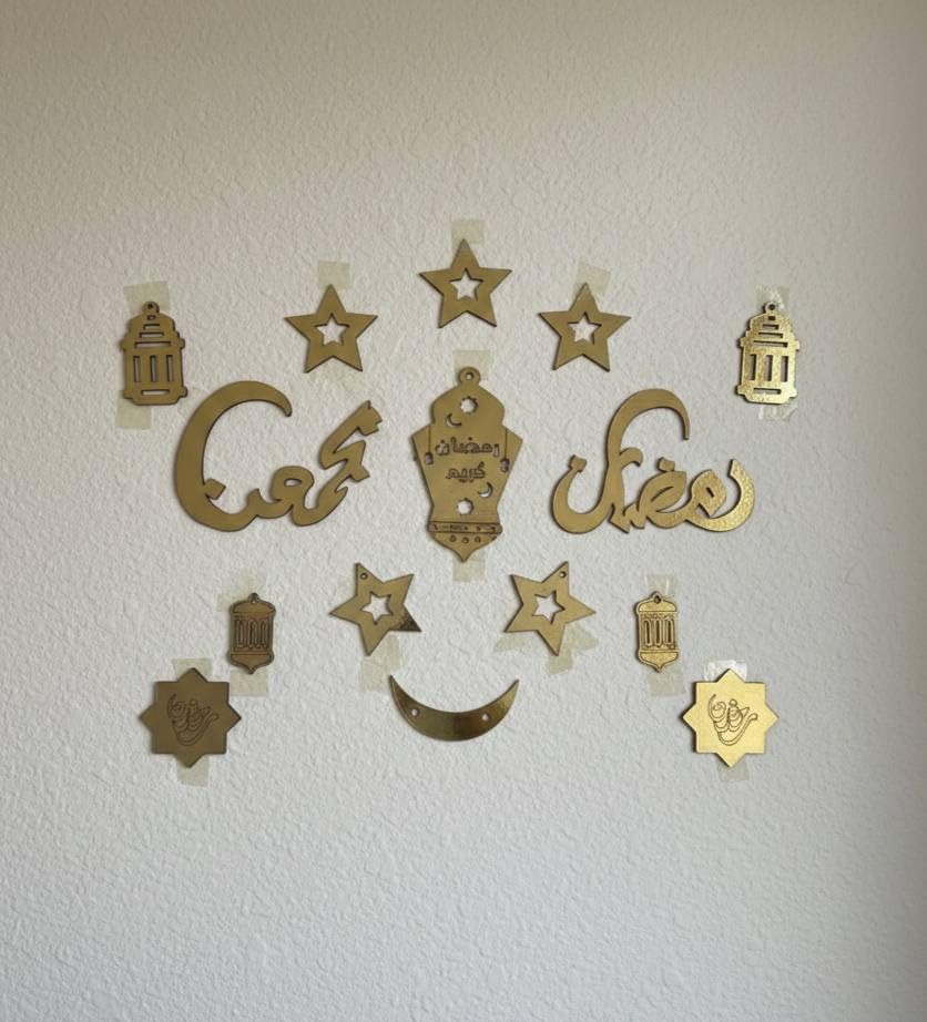 - المواد والتصميم: قطع خشبية مصنوعة بلون ذهبي أنيق ومثبتة على كرتون متين، مع تصميم دبل فيس يمكن استخدامه من الجهتين