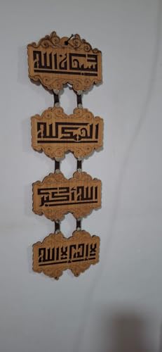 Generic - دلاية خشبية رماضانية محفورة ليزر لون ذهبي (شكل رباعي)