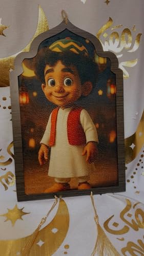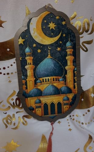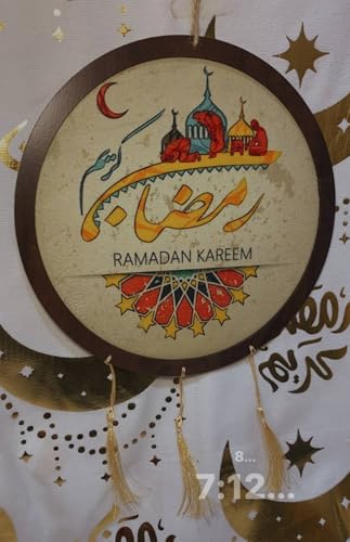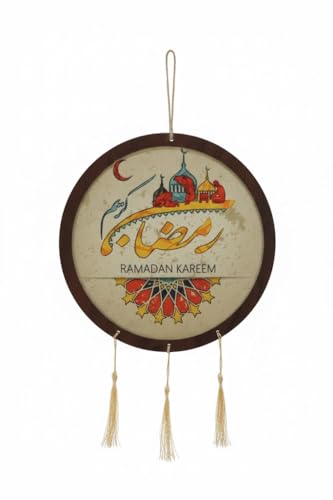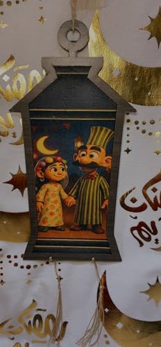 Generic - تابلوة حائطي رمضاني من الخشب برسومات وشخصيات رمضانية وألوان مبهجة – مزود بشراشيب – مناسب لتزيين المنزل خلال شهر رمضان s
