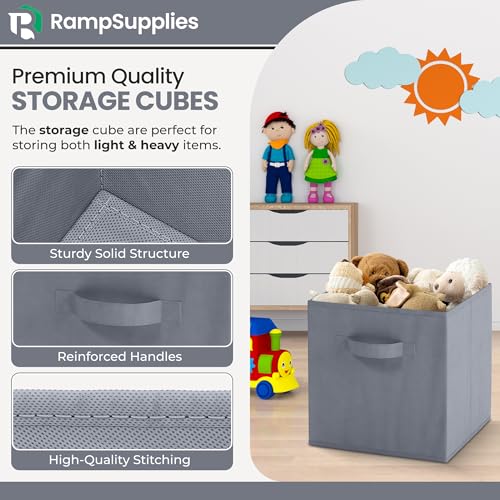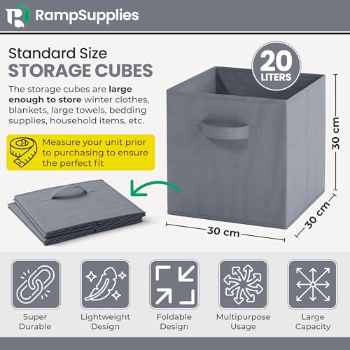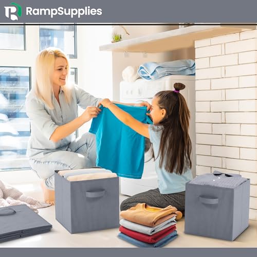 RampSupplies - صناديق تخزين قماشية قابلة للطي مصممة بمقابض، أبعاد 30 سم × 30 سم × 30 سم، سلال ألعاب مناسبة لترتيب ملابس الأطفال والاستخدام في المنزل والمكتب من رامب سابلايز، رمادي