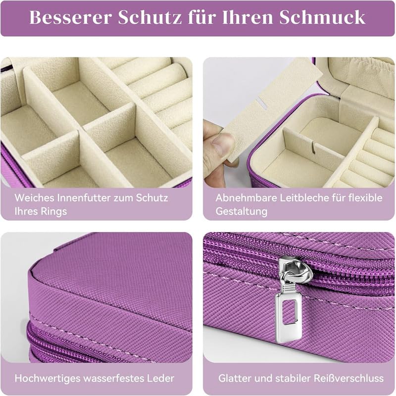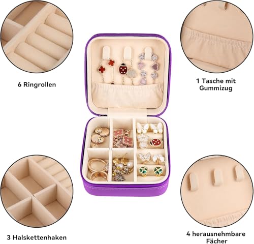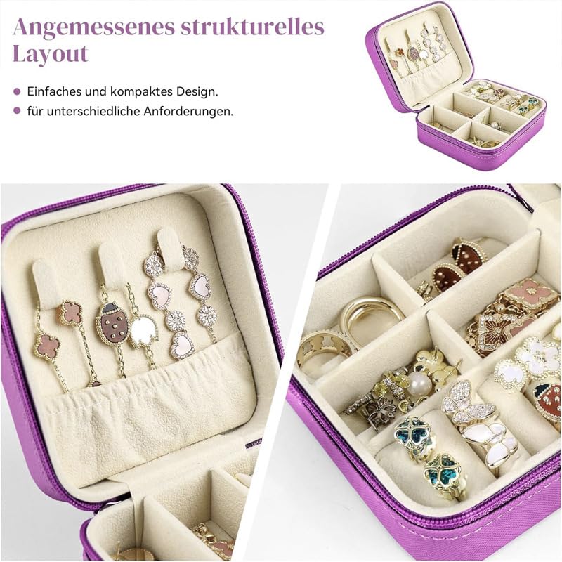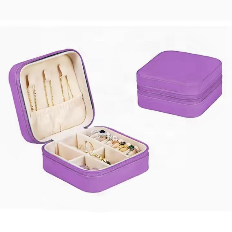 Generic - صندوق مجوهرات جلد صغير للسفر, حقيبة تخزين محمولة مناسبة للاقراط والخواتم والقلائد والاساور للنساء والفتيات- لون موف- قطعة واحدة - من رنا ستور