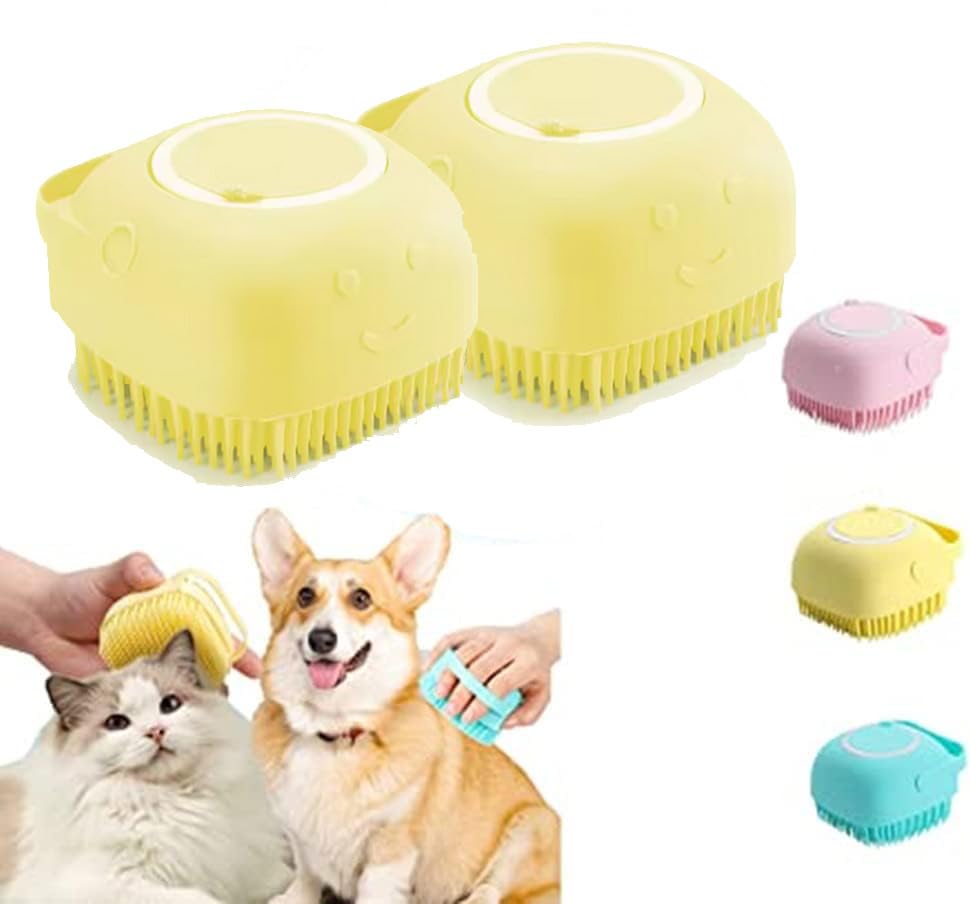 - فرشاة حمام للحيوانات الأليفة، شامبو للحيوانات الأليفة من السيليكون الناعم موزع للتدليك، فرشاة استحمام لتصفيف شعر الكلاب والقطط - 2 قطعه لون اصفر - من رنا ستور