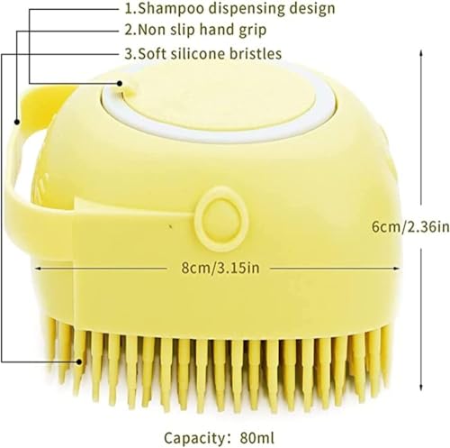 - مريحة في الاستخدام في أعلى الجزء السفلي، يمكنك فتح الحلقة الصغيرة وصب الشامبو والماء. عند الاستخدام، يمكنك الضغط على الزر العلوي من السيليكون لإنتاج الإسفنج. يزيل الشعر المتساقط والغبار والأوساخ بلطف. فرشاة شعر للكلاب مع العديد من النتوءات الناعمة تضمن عدم خدش جلد حيوانك الأليف وفراء الحيوانات الأليفة أثناء الاستحمام.